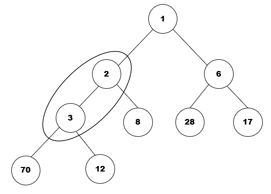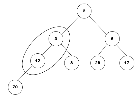 4. 마지막으로 자식 노드인 70과 비교를 하지만 우선순위가 12가 더 큰 관계로 삭제가 종료가 된다.