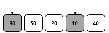 arr [] = { 30, 50, 20, 10, 40 }의 배열로 선택 정렬을 이용하여 정렬해보자.