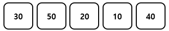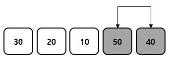 arr [] = { 30, 50, 20, 10, 40 }의 배열로 버블 정렬을 이용하여 정렬해보자.