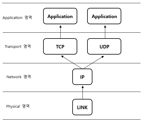 크게 4가지의 영역이 나누어져 있다. 미처 신경 쓰지 못했지만 데이터의 송수신은 소프트웨어만으로 해결이 될 수 있는 문제가 아니다. 어느 정도 하드웨어의 시스템이 구축이 되어있어야 하고 많은 필요한 문제들이 존재한다. 따라서 이러한 문제들을 하나의 프로토콜의 설계로 해결하는 것이 아닌 작은 문제로 해결이 되어야 한다. 그래야 효율적으로 문제들을 해결할 수 있기 때문이다. 그렇기 때문에 프로토콜 스택은 위와 같은 4가지의 영역 별로 세분화되어있다. 이제부터 하나씩 세분화된 각 영역들을 살펴보자.
